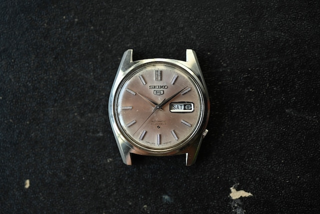 ※こちらは現状販売品となります。 弊店の半年間保証の対象外(時計の一日のズレ、日差に関しては保証の対称外)となりますので、必ずご了承の上、お買い求めいただきますようお願いいたします。 参照URL(As is について):https://jwatchman.base.shop/blog/2025/09/10/101441 オーバーホールに関してはご希望の場合、 別途お見積を差し上げますので、ご注文時の備考欄にご記入くださいませ。 ※2週間ほどお見積りまでお時間を頂戴していおります。個体によって費用は変動いたします。 今回ご紹介するのは 1968年10月に製造されたセイコー5です。 サイズ・スペック サイズ(サイズ・スペックの規格に関してはサイズ規格ページをご覧ください) 縦:41.0㎜×横:36.0㎜ ラグ幅:19.0㎜ 厚さ:11.2㎜ ベルト:付属なし。 スペック 駆動方法:機械式(自動巻き) 防水能力:非防水 現状平置き精度:約+68秒(一日当たり) 振り角187度程度 セイコー5の6119搭載機です。 ステンレスの外装にブラウンに エイジングした文字盤が特徴。 国産(日本製)の時計は 経年変化することが少ないですが この個体は例外でブラウンや 赤銅の焼けが発生しています。 過去に外装に研磨を入れたようで、 特価品としてご案内差し上げます。 リューズを押すことで日付の早送りが 実施できるタイプですが、 故障しておりできません。 ベルトは付属しません。 現状としてのお渡しです。