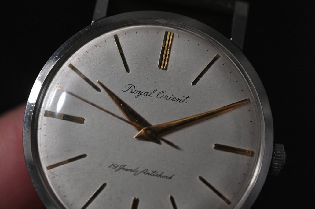 【腕時計】1960年代 オリエント ロイヤルオリエント 白文字盤 バイカラー ドルフィン針×バーインデックス 手巻き メンズ腕時計 OH済み