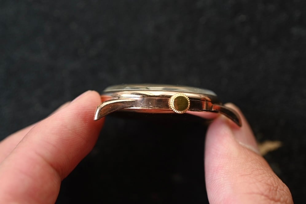 リューズは当時の純正品(イエローゴールド)が装着されています。