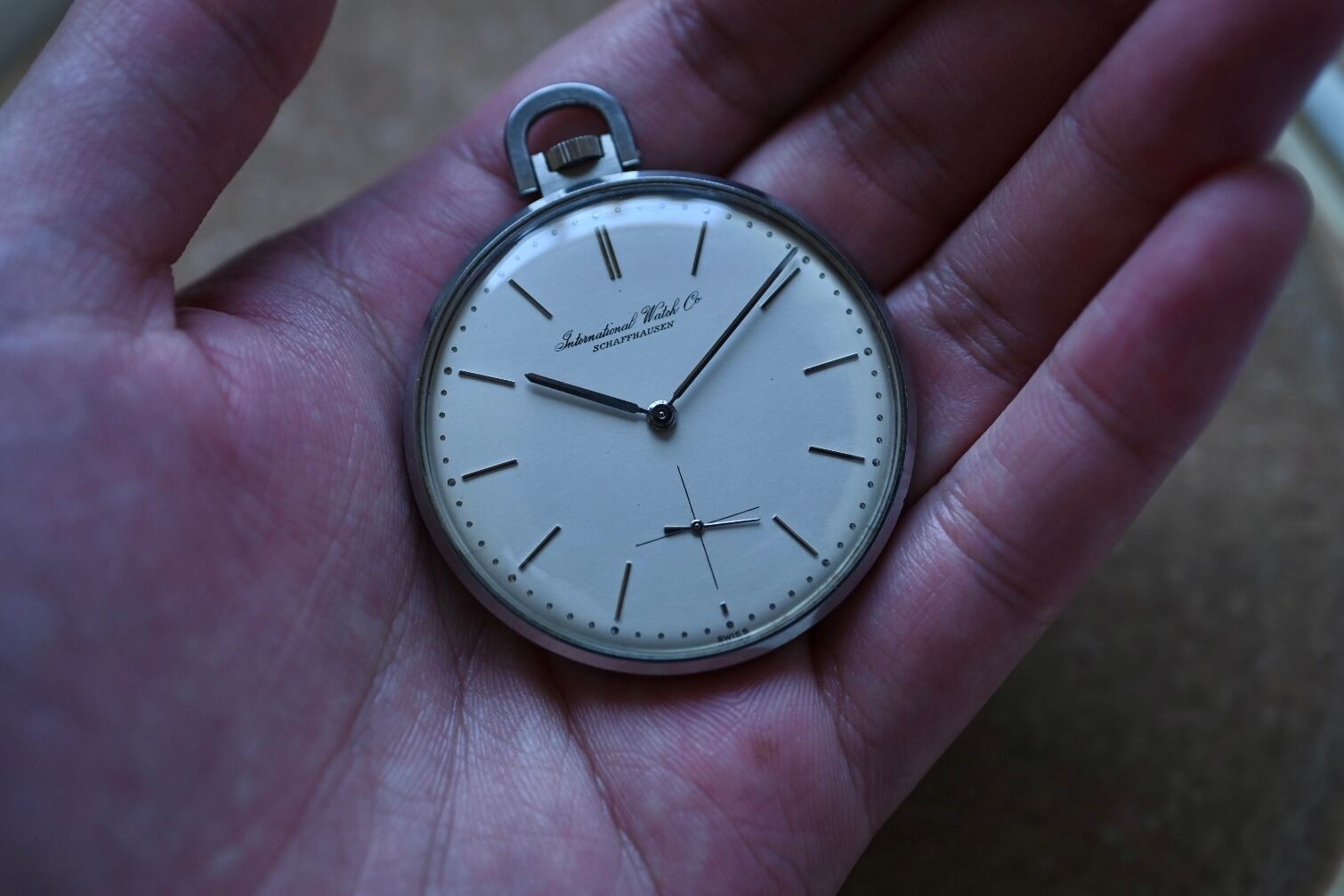 Coming soon...【懐中時計】1960年製 IWC スモールセコンド 白文字盤 ステンレス 薄型懐中時計