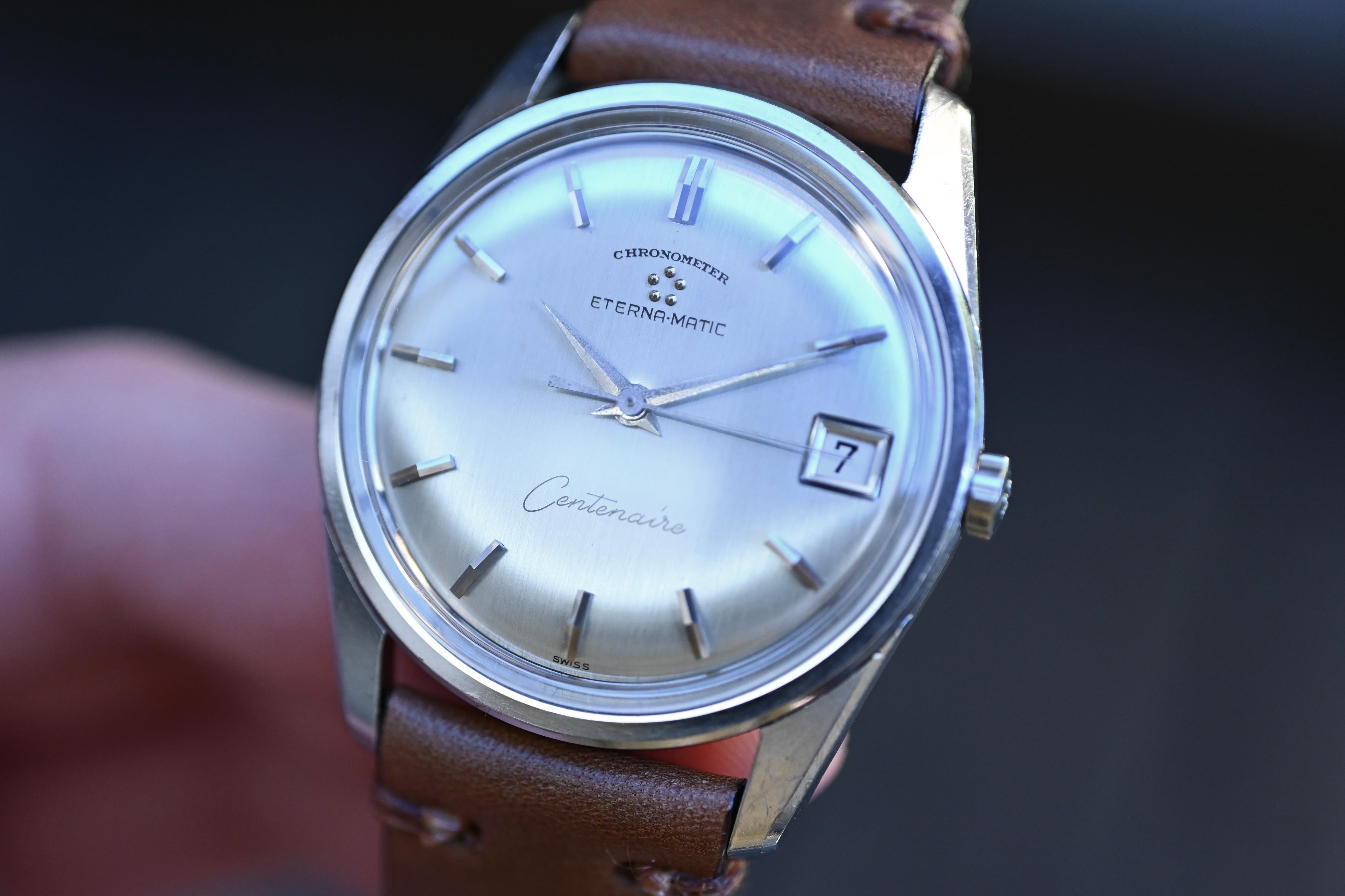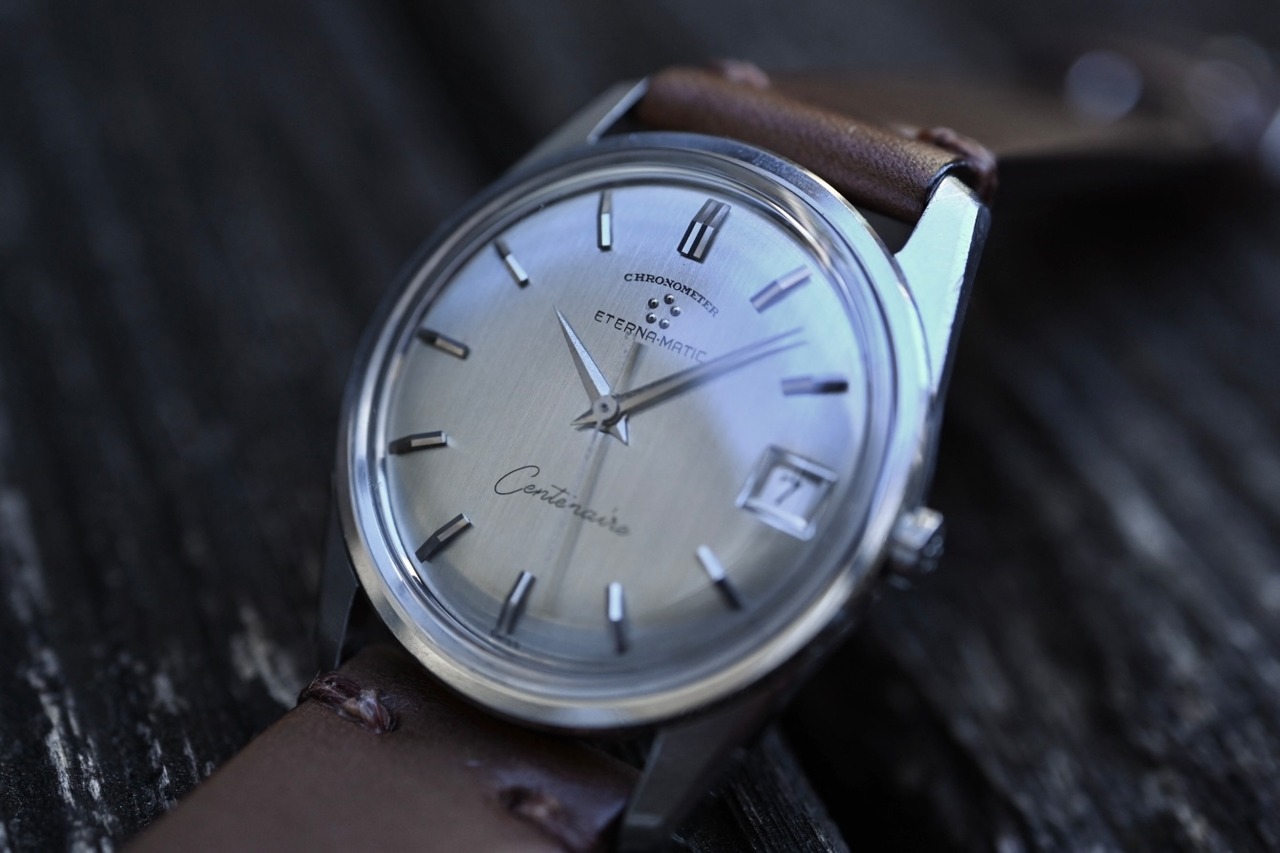 【腕時計】1961年製 エテルナマチック センテナール・クロノメーター 自動巻き メンズ腕時計 シルバーヘアラインダイヤル メダリオン デイト Eterna matic Centenarire Chronometer Mens watch Silver metal finish